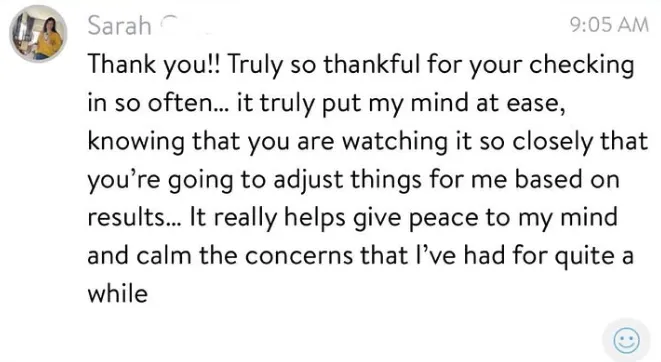 We work with you to adjust your plan if something isn't working. We figure out why and fix it. We're always here to help you and guide you, so we are constantly progressing.